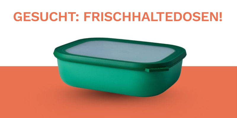 Ab sofort möchten wir unseren Kund:innen nicht nur Futter für ihre Vierbeiner, sondern auch regelmäßig warme Mahlzeiten für sie selbst mitgeben. Dafür brauchen wir jede Menge Dosen inkl. Deckel, die eine ganze Portion fassen - damit das Essen sicher und nachhaltig mit nach Hause genommen werden kann.